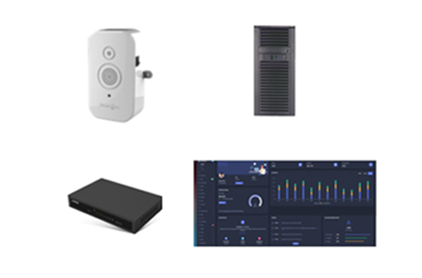 본 제품은 공간에 특정 주파수를 발생시켜 음장을 형성하고, 온도변화에 의해 달라지는 음장변화의 패턴분석을 통해 화재상황 여부를 판단하는 초기 화재감지 및 예방 시스템입니다. 인공지능이 음장 스펙트럼을 분석하여 실시간으로 열 또는 공간의 변형으로 인한 음장변화 패턴을 분류하여 이상온도와 동작 상태를 판별할 수 있습니다. 기존 보안시스템과 연동이 가능하며, 발생한 이벤트에 대해 모바일 APP으로 알림을 수신할 수 있다는 특징이 있습니다.